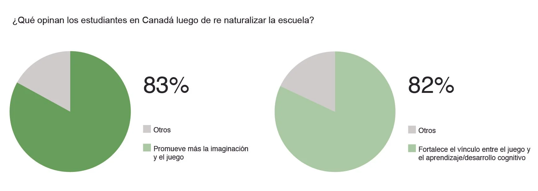 En un estudio* realizado en 59 escuelas de Canadá, el 83% de los estudiantes están de acuerdo que se promueve más la imaginación y el juego luego de re naturalizar y transformar sus espacios exteriores.